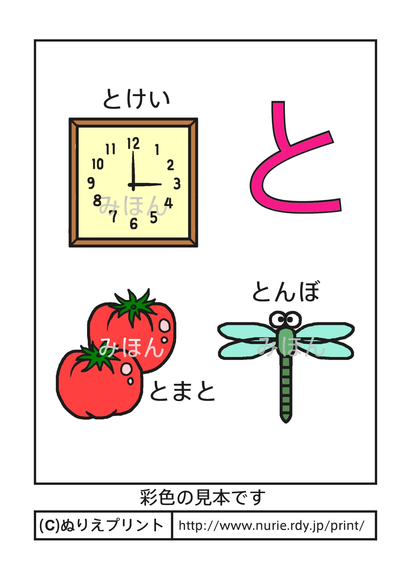 と(彩色見本)/たちつてと/ひらがな(五十音)/こどものぬりえ【ぬりえプリント】